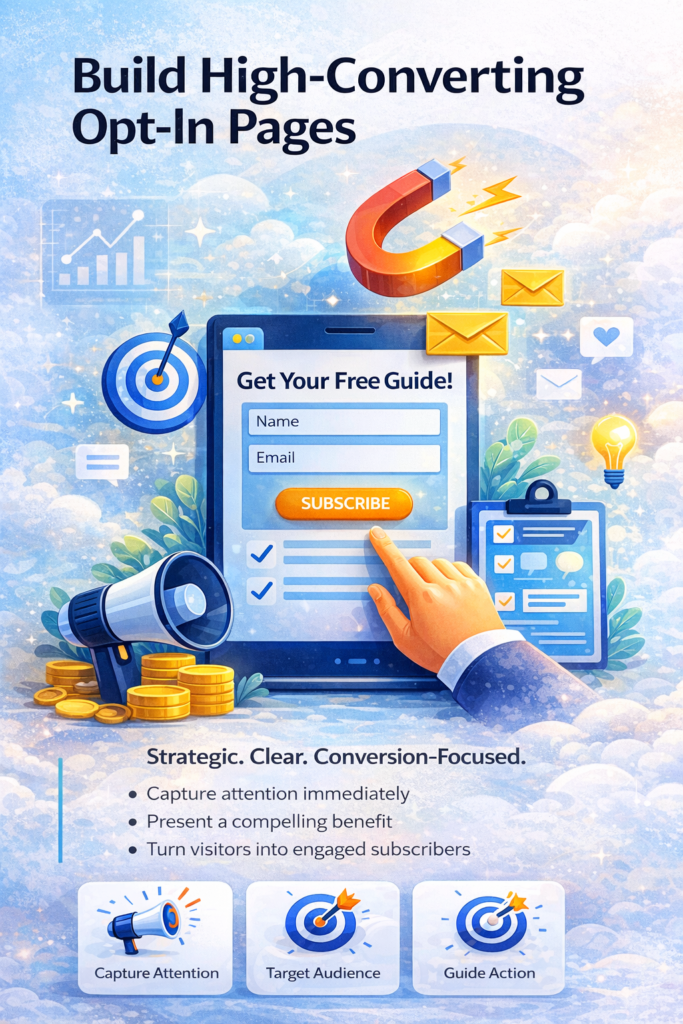 Strategic opt-in pages combine clear value with persuasive design — helping businesses turn website visitors into qualified email subscribers ready to engage and convert.
